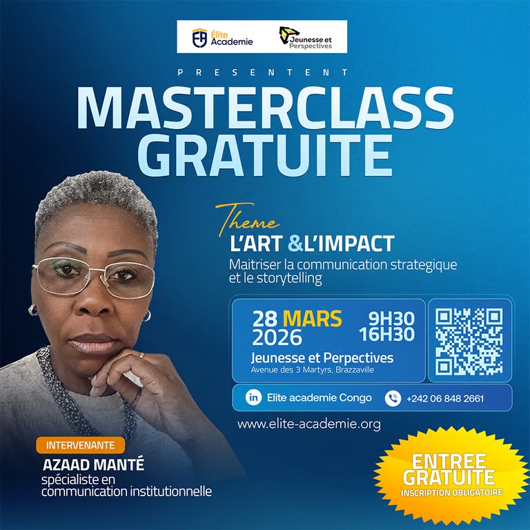 Pour clôturer le mois de mars sous le signe de l’excellence, Élite Académie organise une masterclass d’exception à Brazzaville autour du thème :
