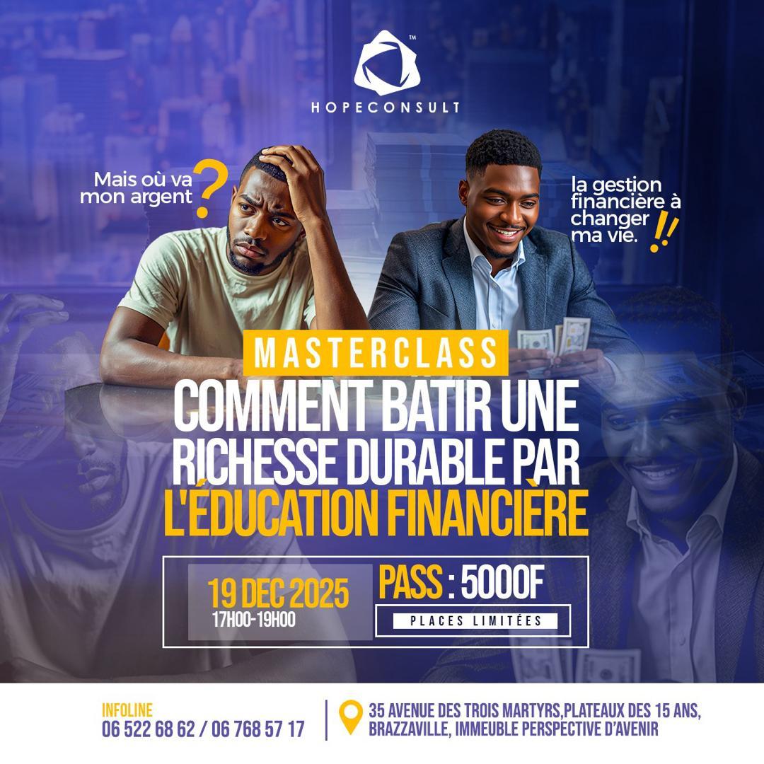 Une masterclass indispensable pour comprendre comment bâtir une richesse durable grâce à une gestion financière organisée et structurée. HopeConsult invite chaque participant à reprendre le contrôle de ses revenus et à adopter des stratégies concrètes pour transformer son quotidien financier.